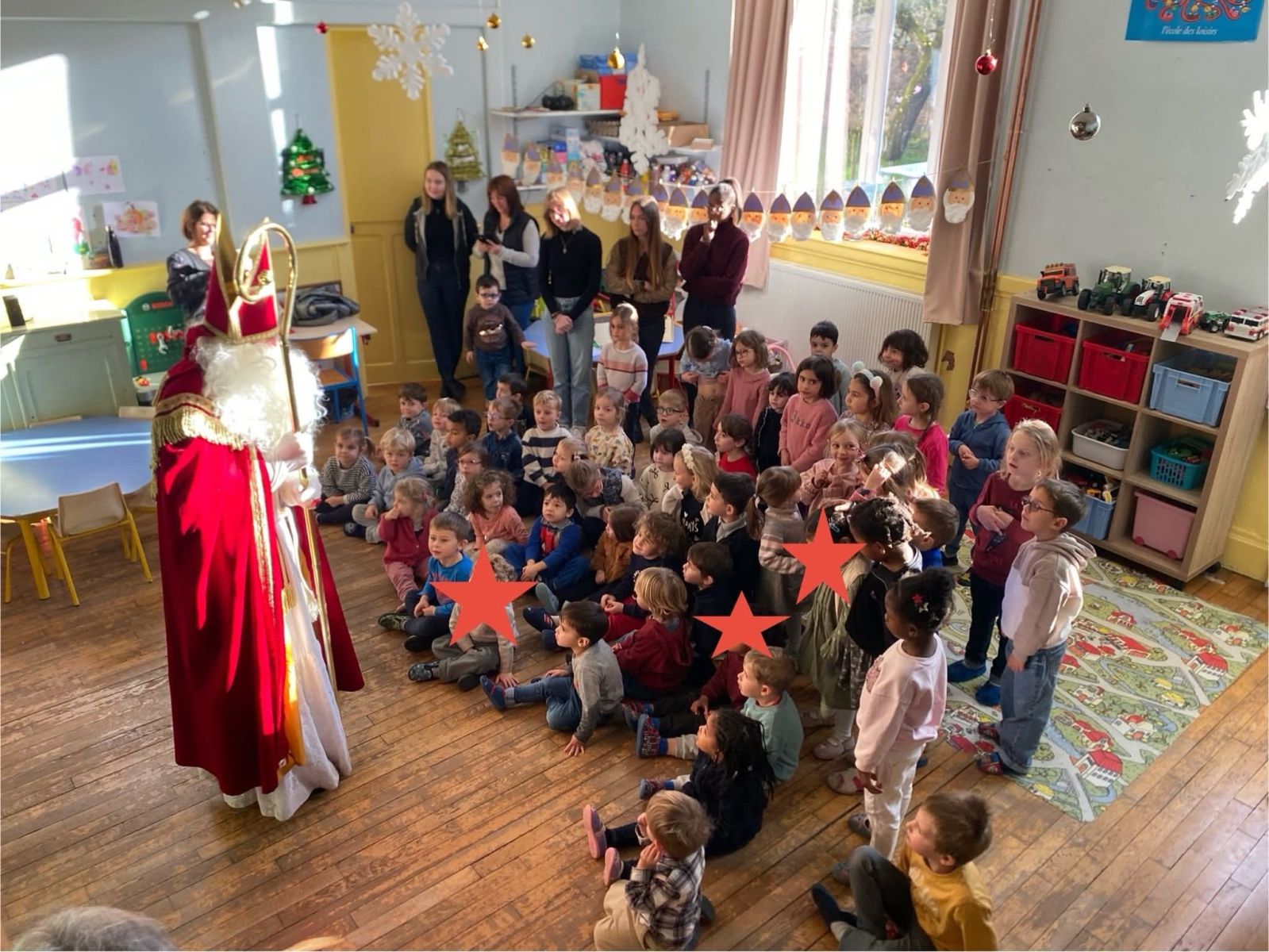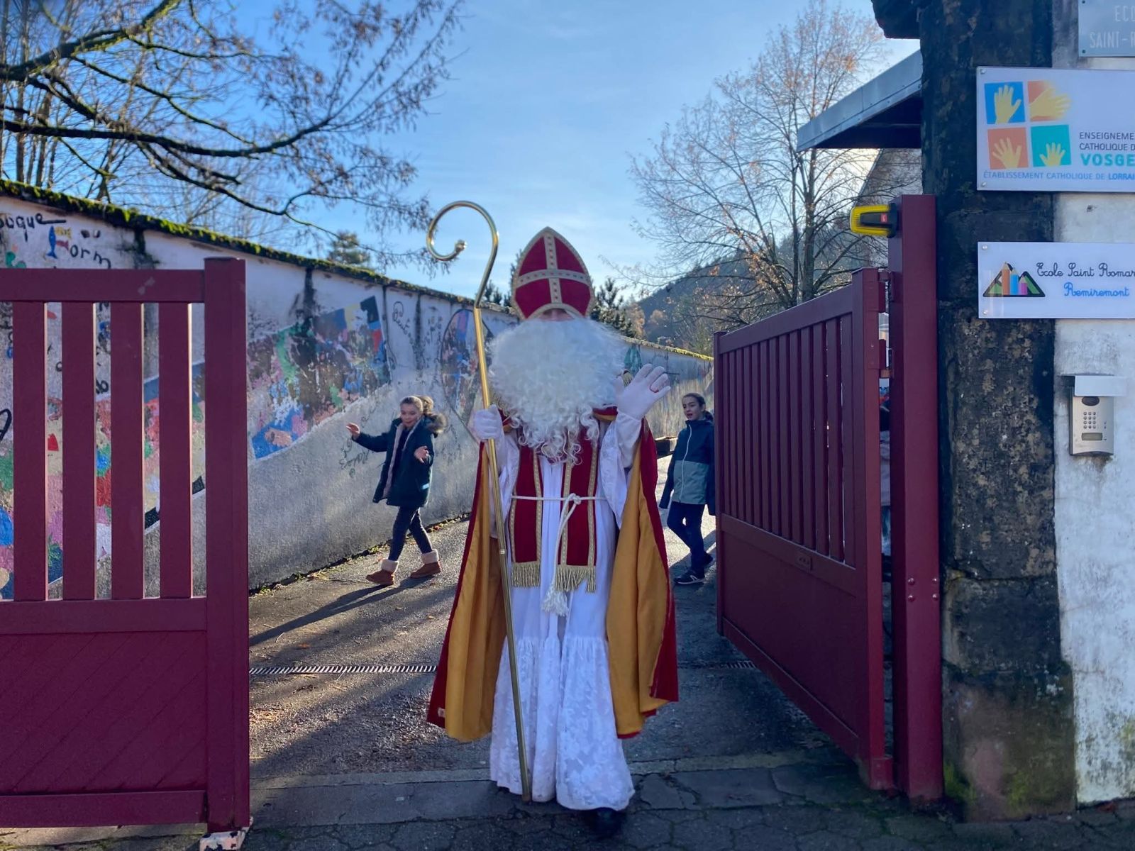 Début décembre 2025, l'École Saint-Romaric a vécu un moment chaleureux et très attendu : la visite de Saint-Nicolas. Dès son arrivée, les enfants de maternelle ont laissé éclater leur surprise et leur enthousiasme. Quant aux élèves d?élémentaire, ils se sont empressés de venir l?accueillir, ravis de retrouver cette figure si chère à la tradition locale.